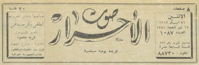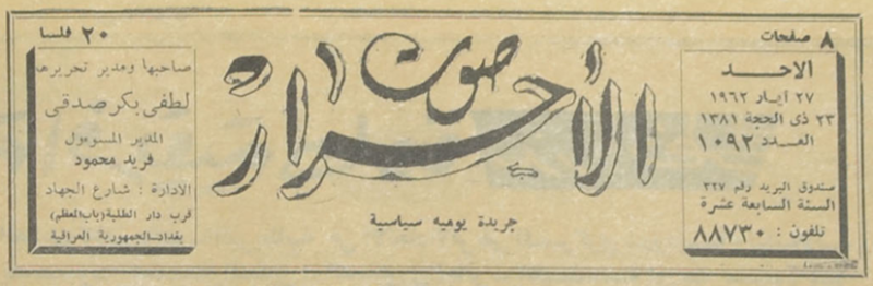 صاحبها ومدير تحريرها : لطفي بكر صدقي.
