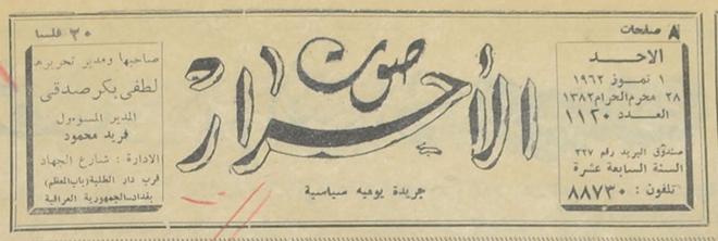 صاحبها ومدير تحريرها : لطفي بكر صدقي.