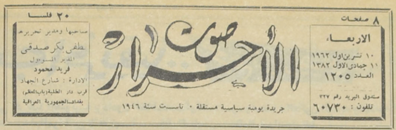 صاحبها ومدير تحريرها : لطفي بكر صدقي.
