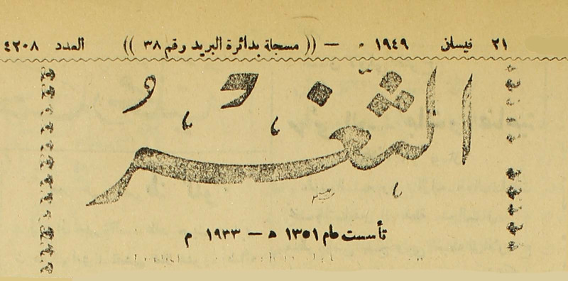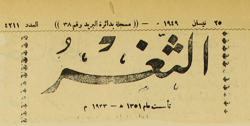 جريدة يومية سياسية عامة = AL-Thaghr : A Daily Newspaper