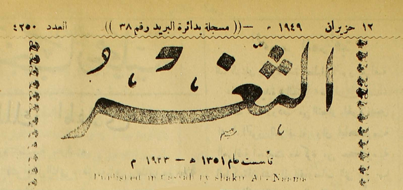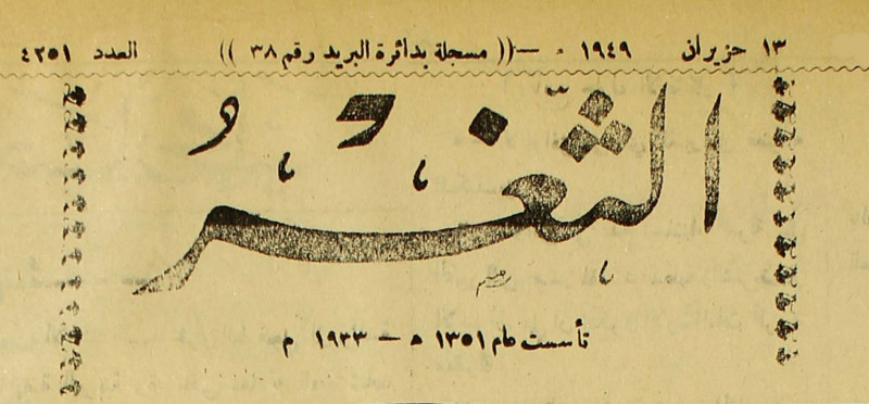 جريدة يومية سياسية عامة = AL-Thaghr : A Daily Newspaper