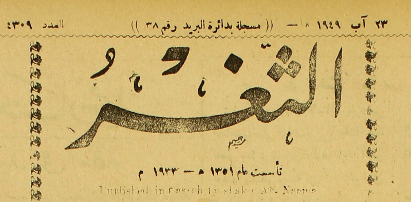 جريدة يومية سياسية عامة = AL-Thaghr : A Daily Newspaper