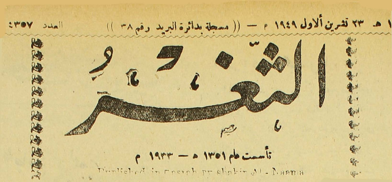 جريدة يومية سياسية عامة = AL-Thaghr : A Daily Newspaper
