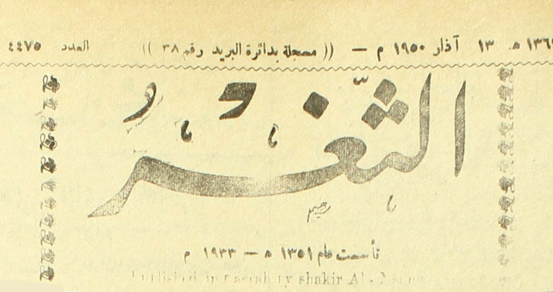 جريدة يومية سياسية عامة = AL-Thaghr : A Daily Newspaper