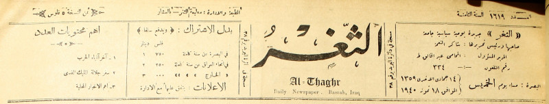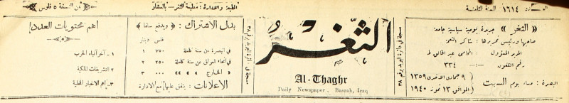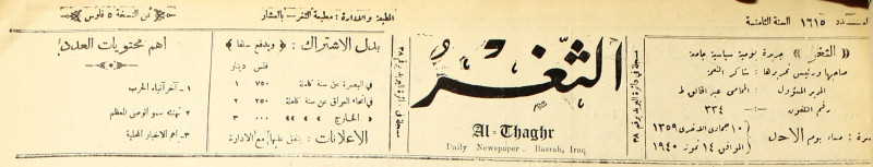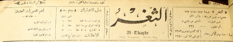 جريدة يومية سياسية عامة = AL-Thaghr : A Daily Newspaper