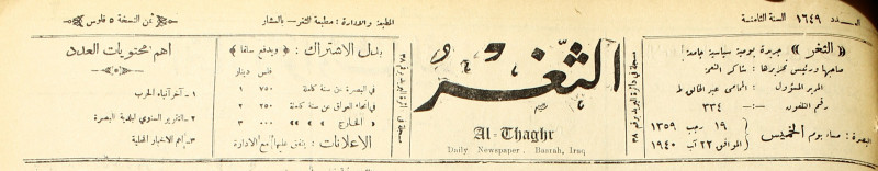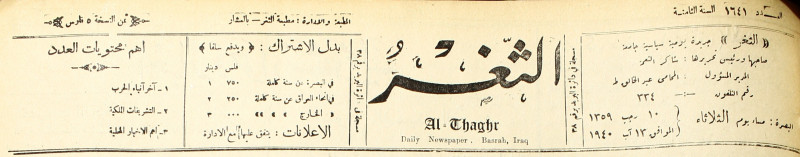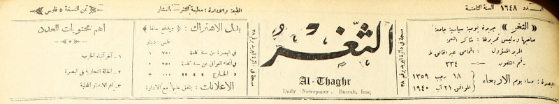 جريدة يومية سياسية عامة = AL-Thaghr : A Daily Newspaper