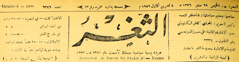 صاحبها ورئيس تحريرها : شاكر النعمة.