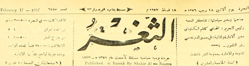 صاحبها ورئيس تحريرها : شاكر النعمة.