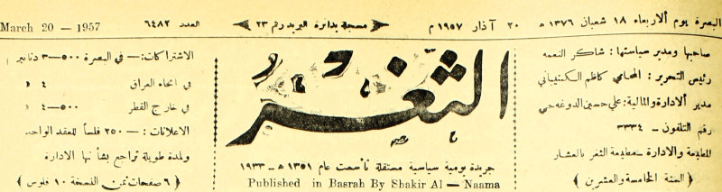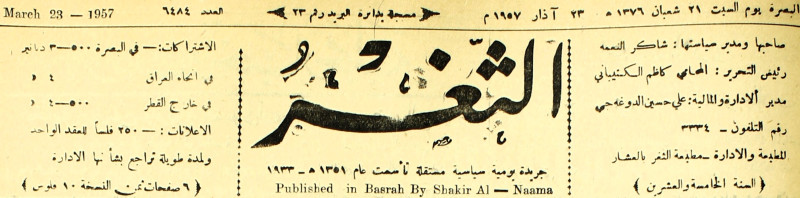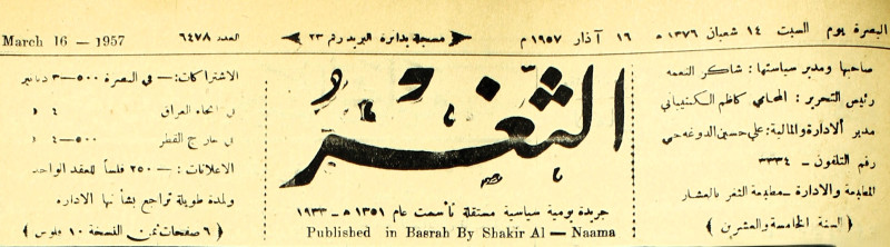 صاحبها ورئيس تحريرها : شاكر النعمة.
