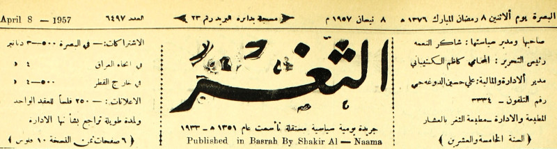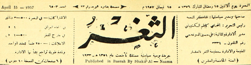 صاحبها ورئيس تحريرها : شاكر النعمة.