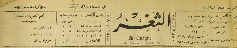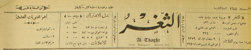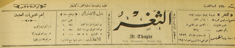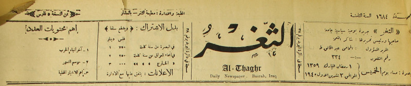 جريدة يومية سياسية عامة = AL-Thaghr : A Daily Newspaper