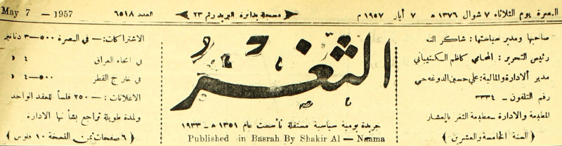 جريدة يومية سياسية عامة = AL-Thaghr : A Daily Newspaper
