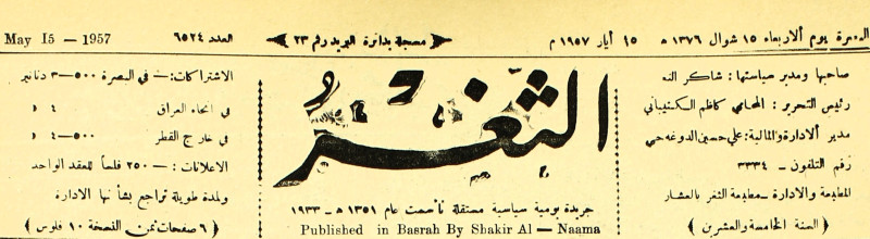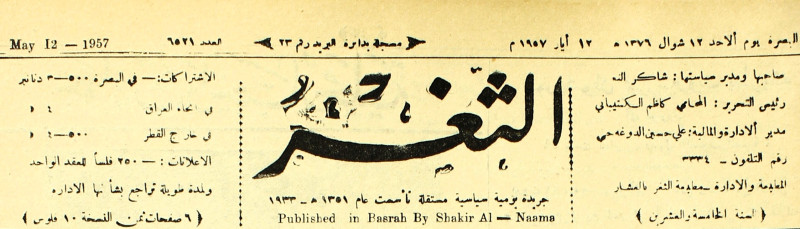 صاحبها ورئيس تحريرها : شاكر النعمة.