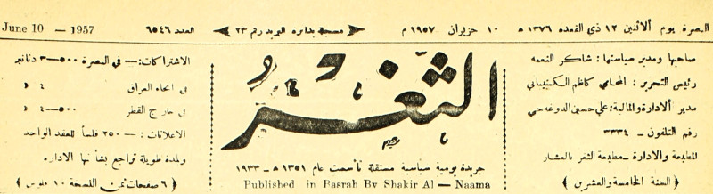 صاحبها ورئيس تحريرها : شاكر النعمة.