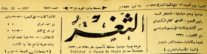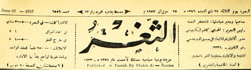 صاحبها ورئيس تحريرها : شاكر النعمة.