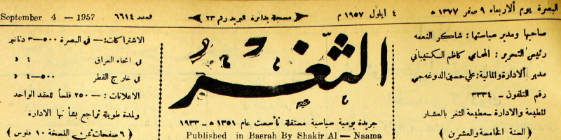 صاحبها ورئيس تحريرها : شاكر النعمة.