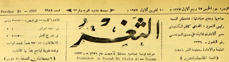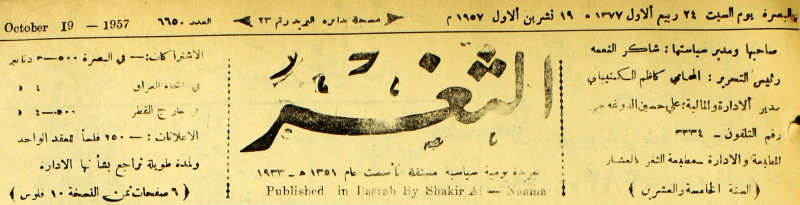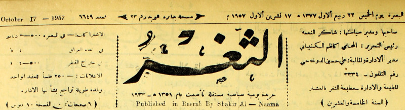 صاحبها ورئيس تحريرها : شاكر النعمة.