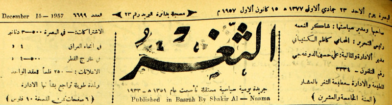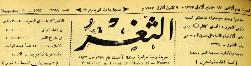 صاحبها ورئيس تحريرها : شاكر النعمة.