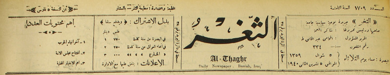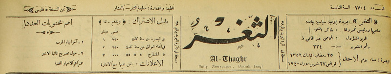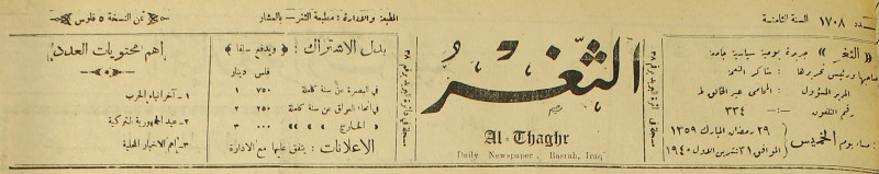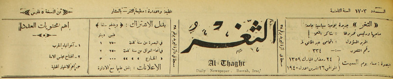 جريدة يومية سياسية عامة = AL-Thaghr : A Daily Newspaper