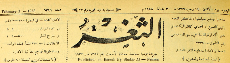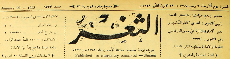 جريدة يومية سياسية عامة = AL-Thaghr : A Daily Newspaper