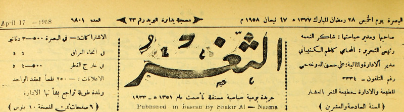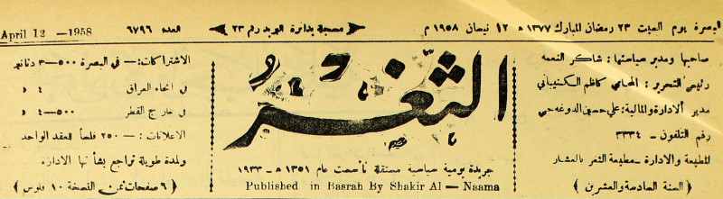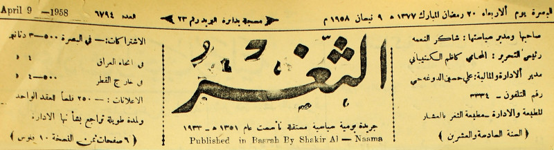 جريدة يومية سياسية عامة = AL-Thaghr : A Daily Newspaper