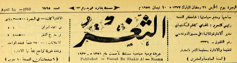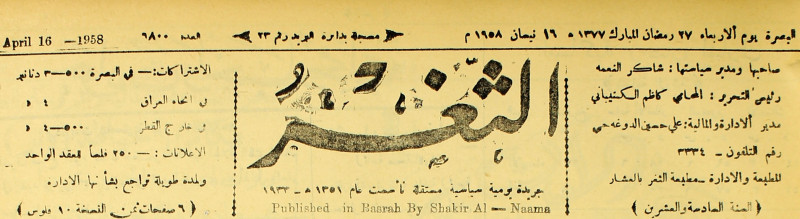 صاحبها ورئيس تحريرها : شاكر النعمة.