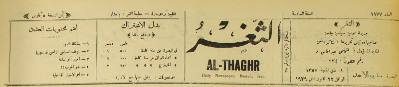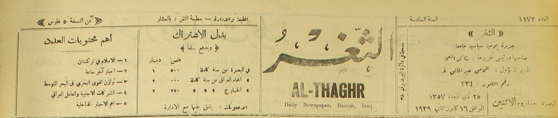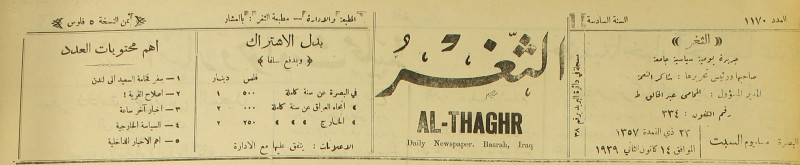 جريدة يومية سياسية عامة = AL-Thaghr : A Daily Newspaper