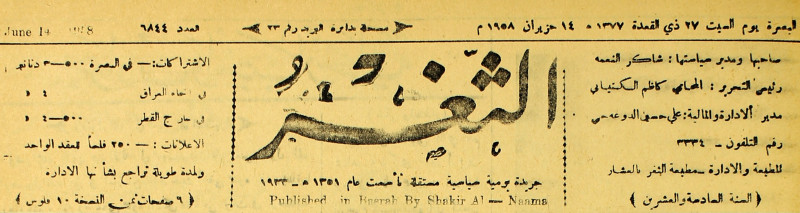 جريدة يومية سياسية عامة = AL-Thaghr : A Daily Newspaper