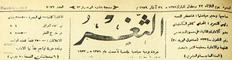 جريدة يومية سياسية عامة = AL-Thaghr : A Daily Newspaper