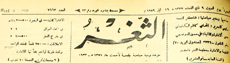 جريدة يومية سياسية عامة = AL-Thaghr : A Daily Newspaper