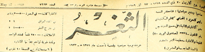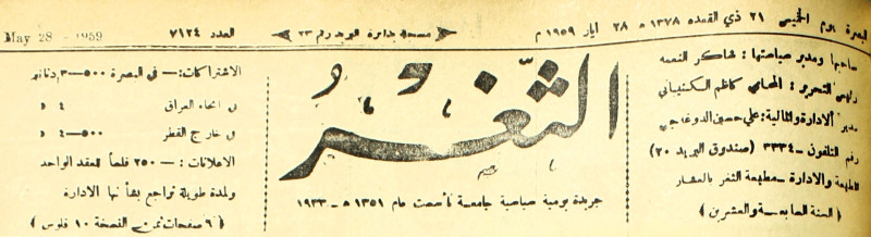 جريدة يومية سياسية عامة = AL-Thaghr : A Daily Newspaper