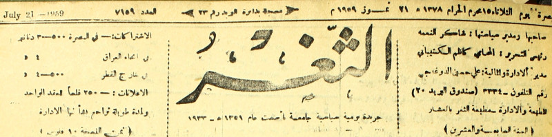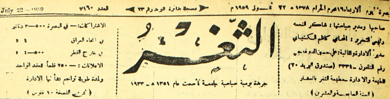 جريدة يومية سياسية عامة = AL-Thaghr : A Daily Newspaper