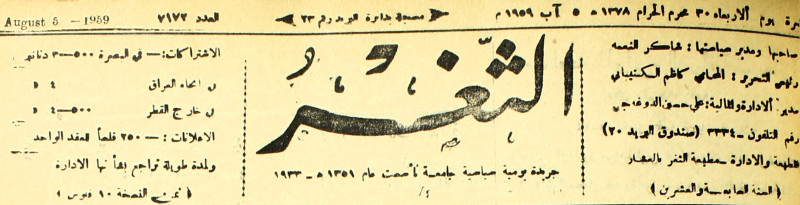 جريدة يومية سياسية عامة = AL-Thaghr : A Daily Newspaper