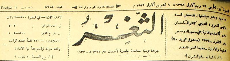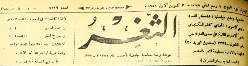 جريدة يومية سياسية عامة = AL-Thaghr : A Daily Newspaper