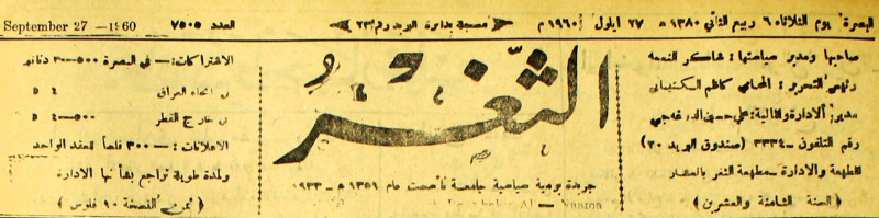 جريدة يومية سياسية عامة = AL-Thaghr : A Daily Newspaper