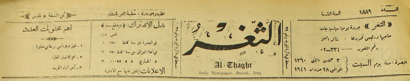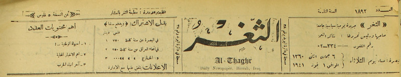 جريدة يومية سياسية عامة = AL-Thaghr : A Daily Newspaper