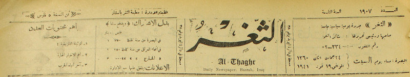 جريدة يومية سياسية عامة = AL-Thaghr : A Daily Newspaper