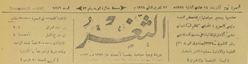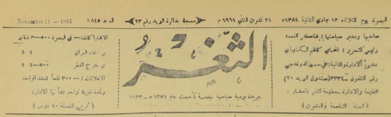 جريدة يومية سياسية عامة = AL-Thaghr : A Daily Newspaper