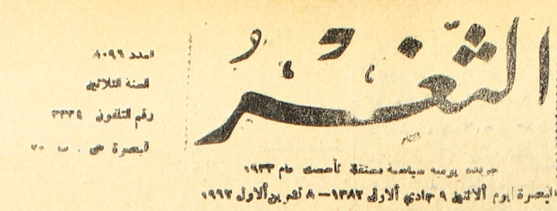 جريدة يومية سياسية عامة = AL-Thaghr : A Daily Newspaper