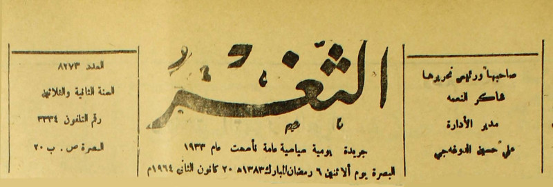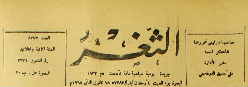 جريدة يومية سياسية عامة = AL-Thaghr : A Daily Newspaper
