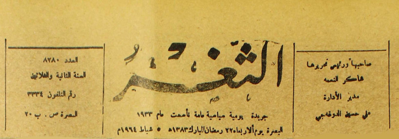 جريدة يومية سياسية عامة = AL-Thaghr : A Daily Newspaper