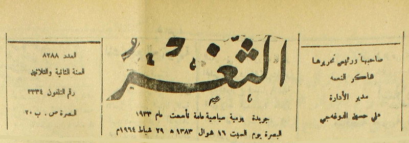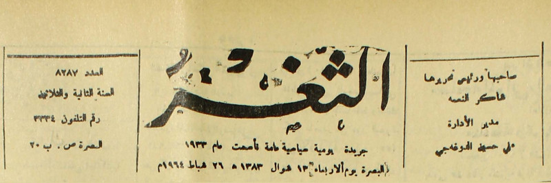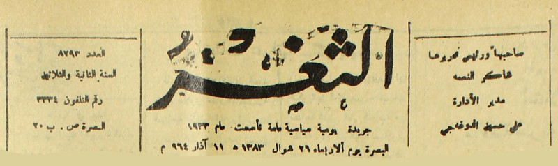 جريدة يومية سياسية عامة = AL-Thaghr : A Daily Newspaper