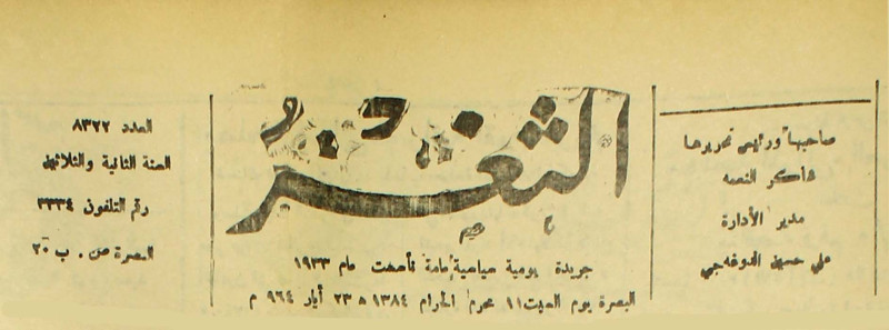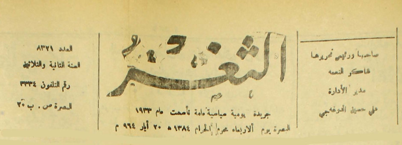 جريدة يومية سياسية عامة = AL-Thaghr : A Daily Newspaper