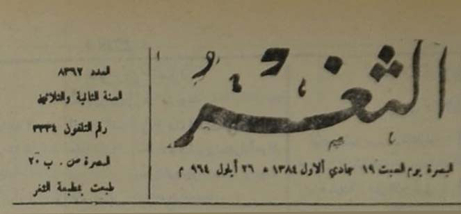 جريدة يومية سياسية عامة = AL-Thaghr : A Daily Newspaper