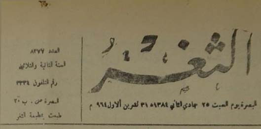 جريدة يومية سياسية عامة = AL-Thaghr : A Daily Newspaper