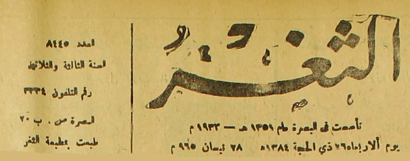 جريدة يومية سياسية عامة = AL-Thaghr : A Daily Newspaper