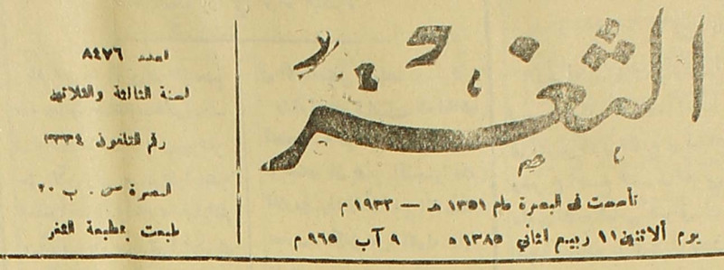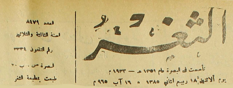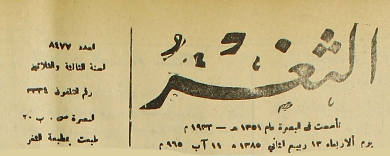 جريدة يومية سياسية عامة = AL-Thaghr : A Daily Newspaper