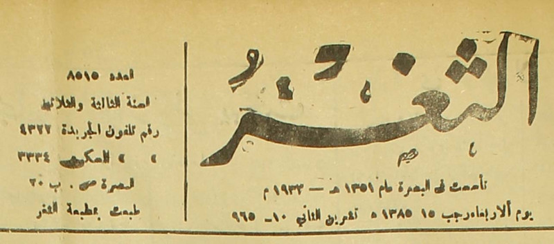 جريدة يومية سياسية عامة = AL-Thaghr : A Daily Newspaper