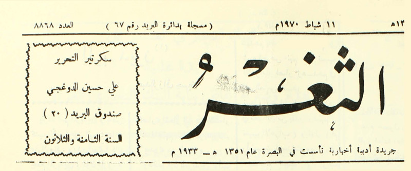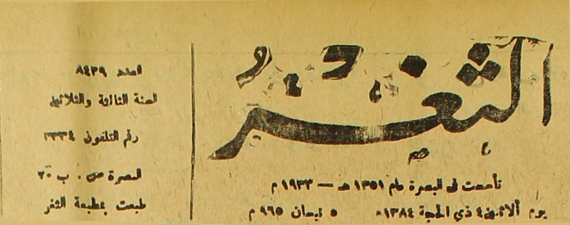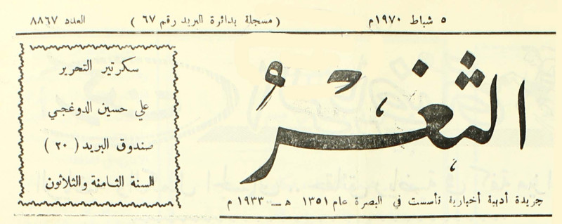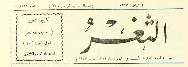 جريدة يومية سياسية عامة = AL-Thaghr : A Daily Newspaper