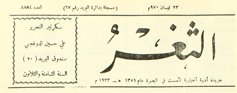 جريدة يومية سياسية عامة = AL-Thaghr : A Daily Newspaper